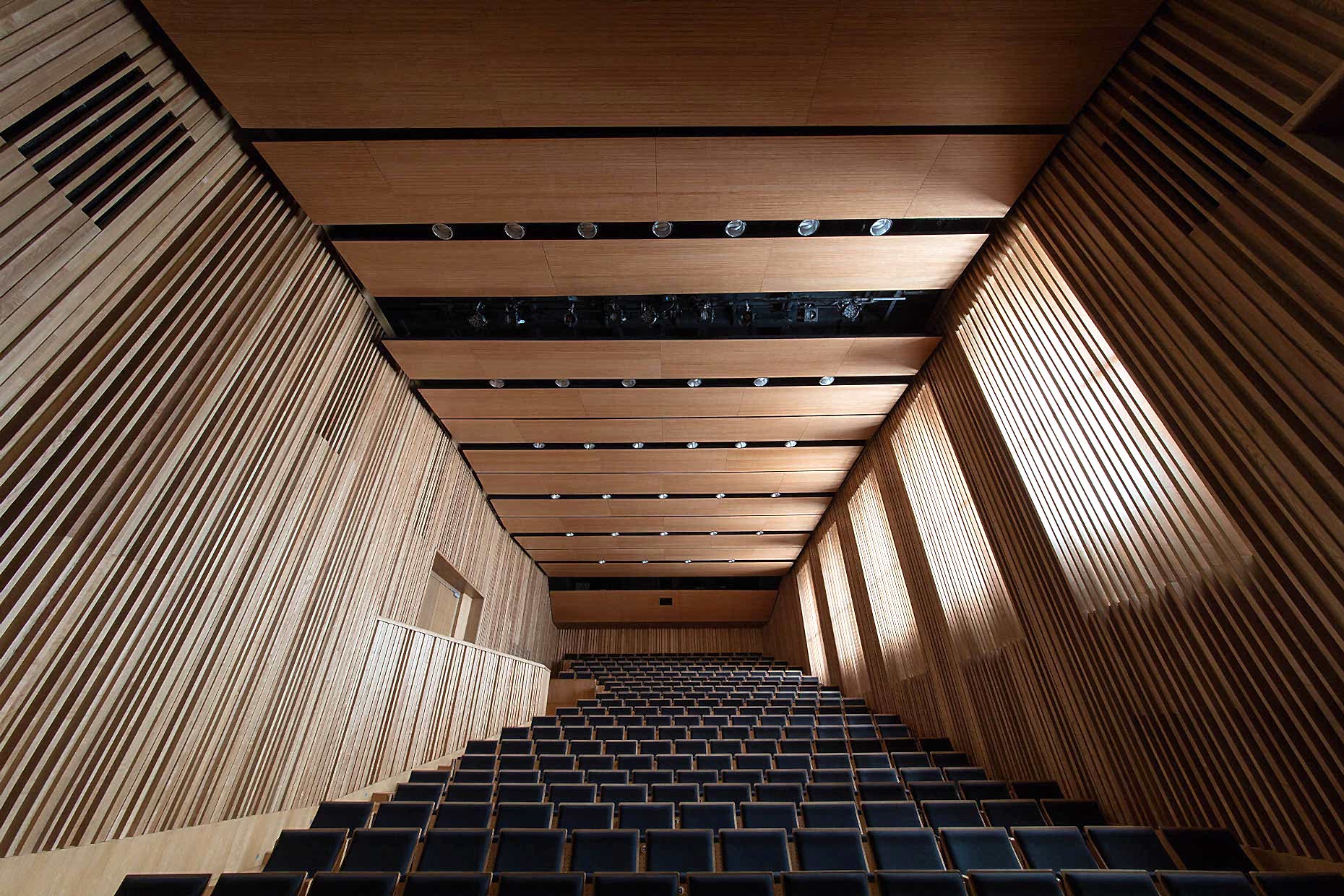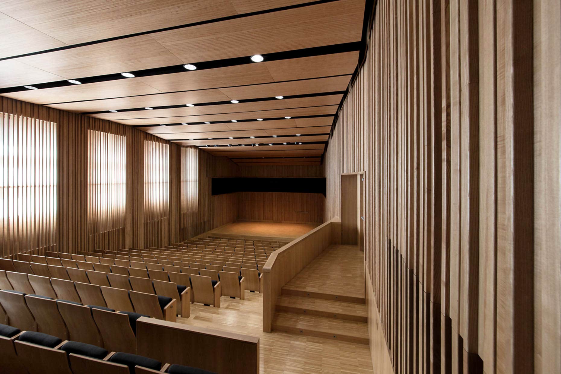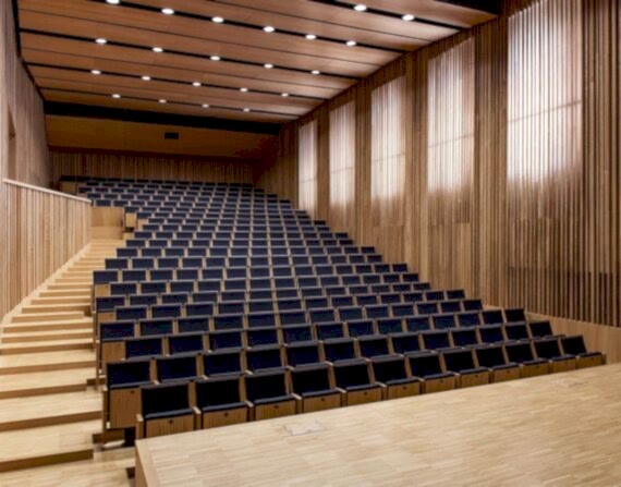 Konferans, tiyatro gibi alanlarda sıklıkla tercih edilen derzli ahşap paneller, sunduğu muhteşem akustik düzenlemenin yanı sıra dekoratif amaç ile de çok seçilmektedir.