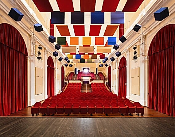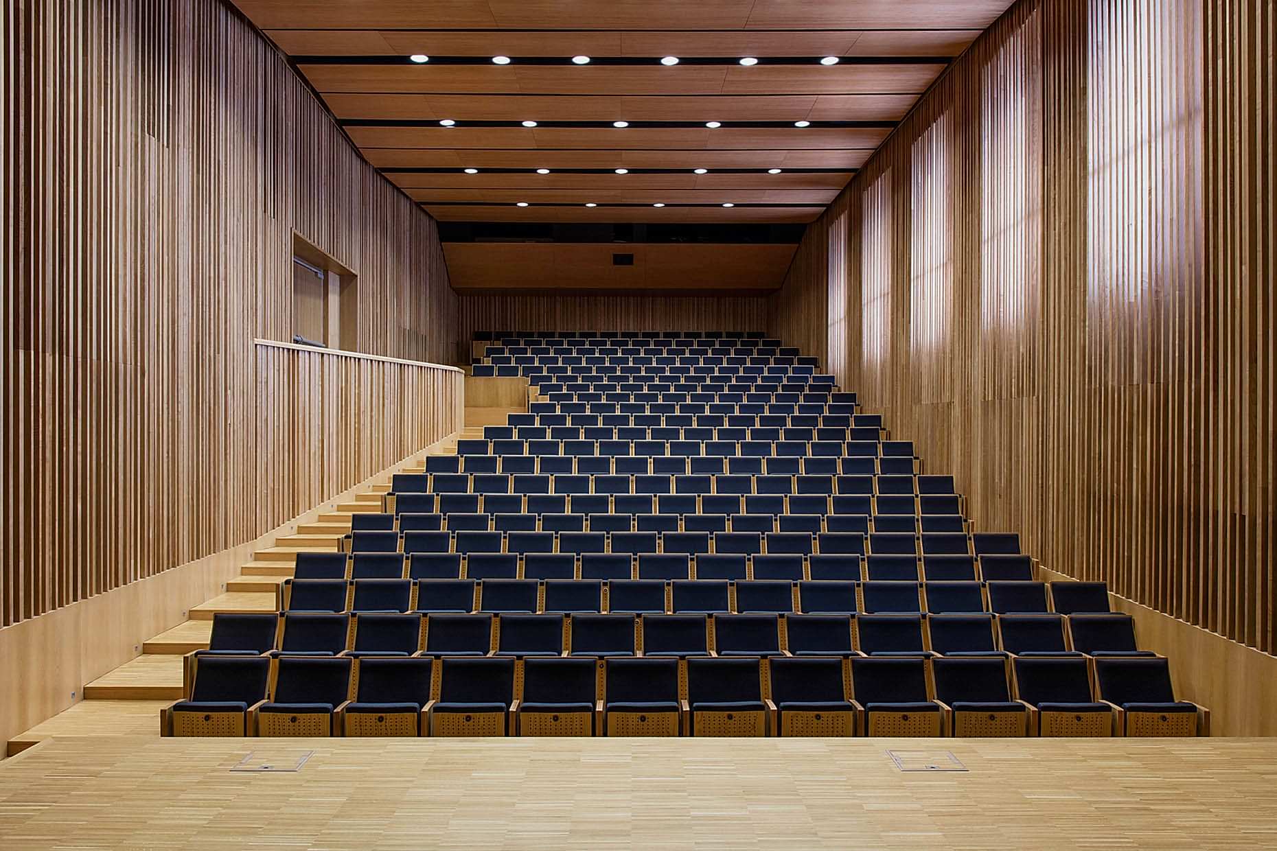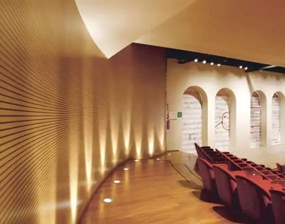 Konferans salonlarında akustik düzenleme amaçlı sıklıkla duvar paneli kullanılmaktadır.