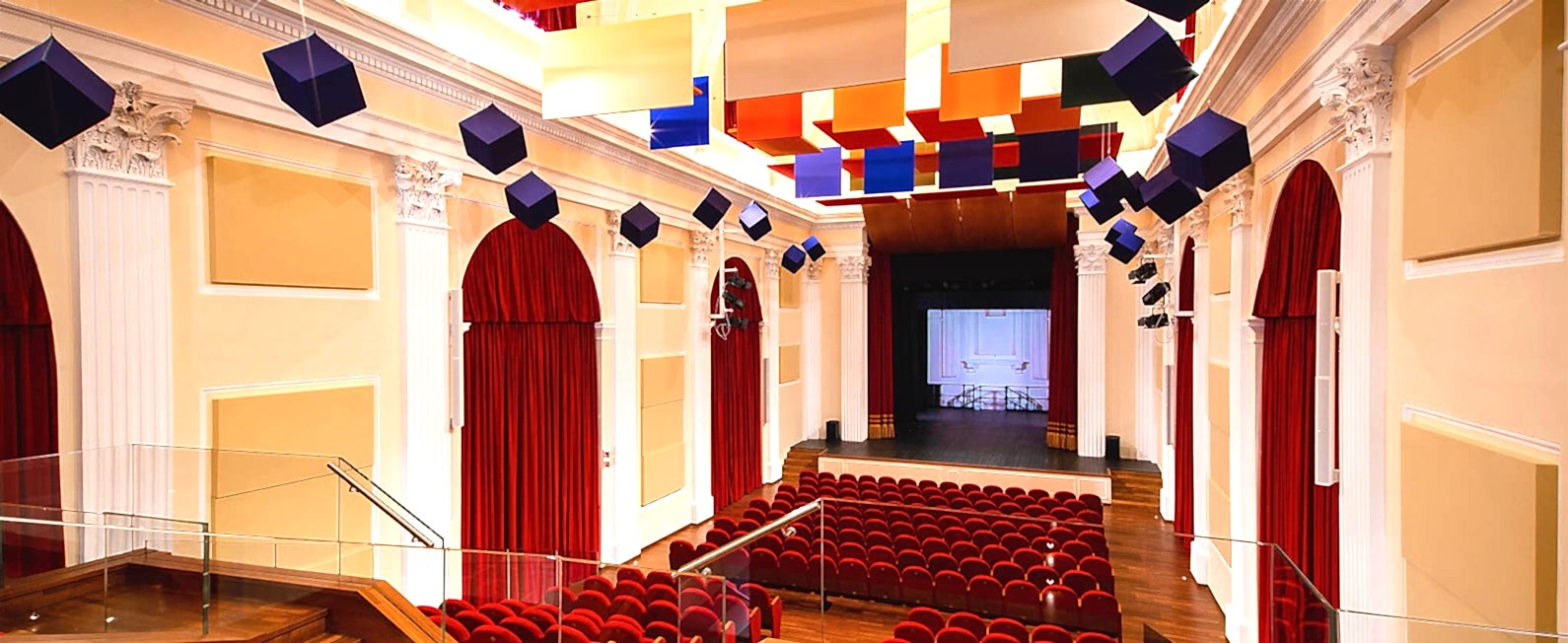 Konferans salonlarında tavan panelleri ile akustik düzenleme sağlanmaktadır.