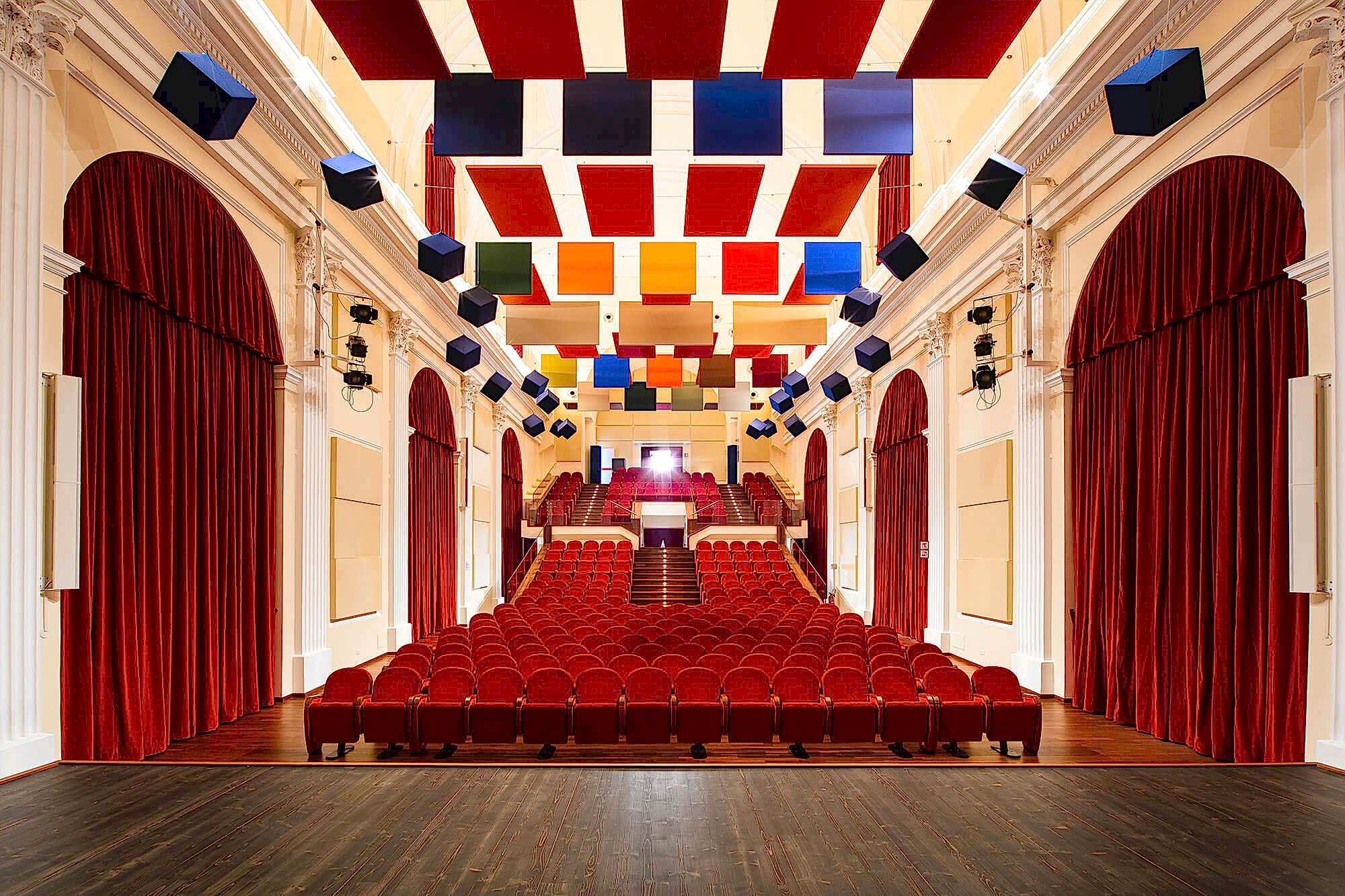 Çıtalı keçe paneller ile yankı ve çınlamalar en aza indirilerek muhteşem bir akustik düzen sağlanmaktadır.
