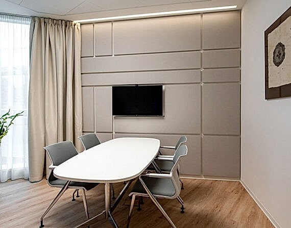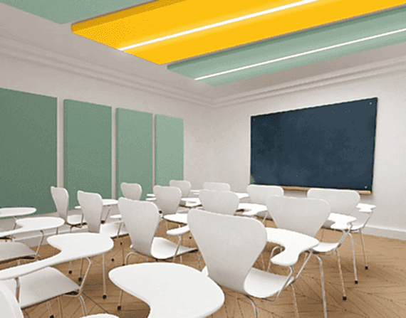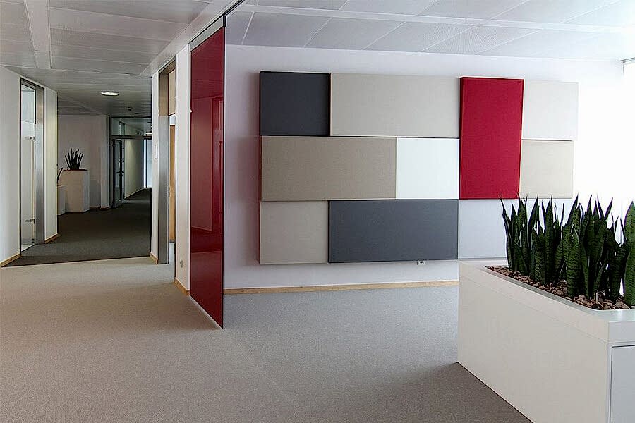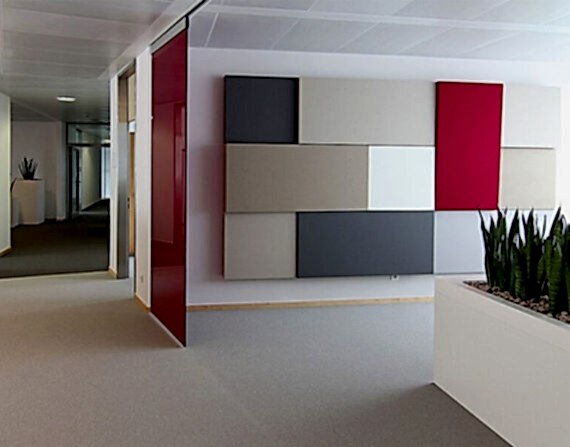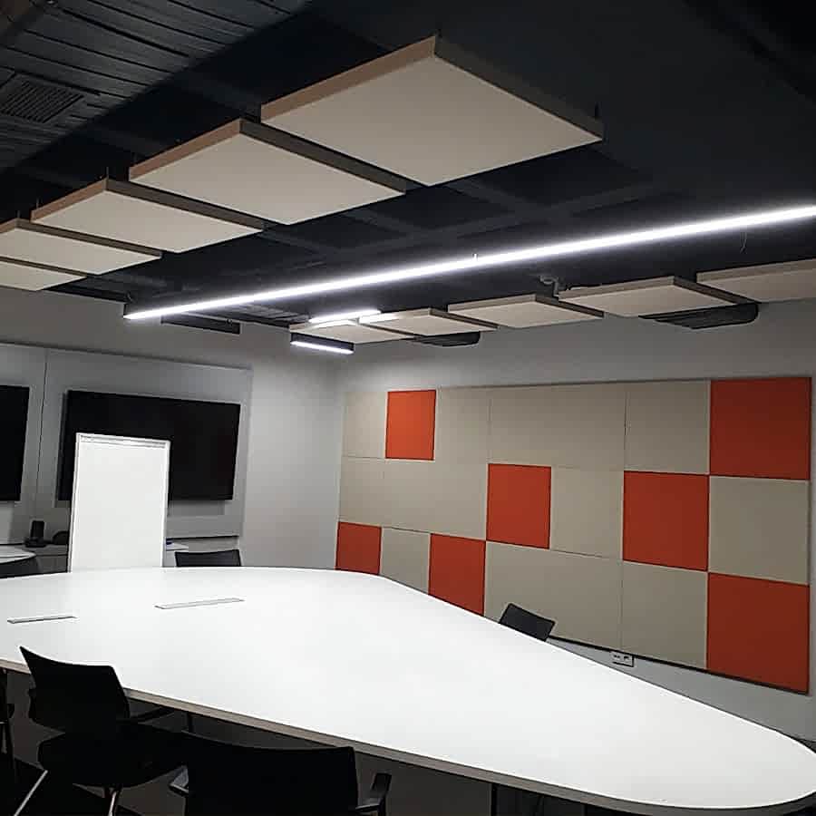 Ofisler, şirketler tarafından akustik düzenleme ve dekoratif amaçlı en sık tercih edilen ürünlerden birisi akustik kumaş baffledir. Ortamdaki yankı, çınlamalar ve gürültüyü önlemeye yaramaktadır.