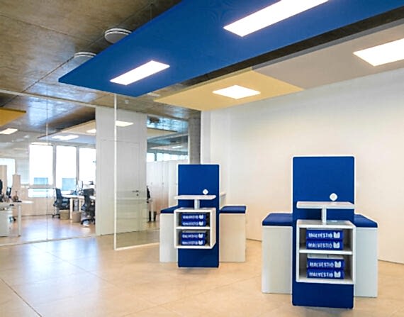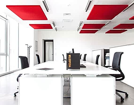 Ofis ve şirket ses yalıtım kaplamalarında, duvar panelleri başta olmak üzere tavan baffle, akustik paravan, akustik yüzer tavan, akustik masa seperatörleri gibi bir çok akustik düzenleme ürünü kullanılmaktadır.