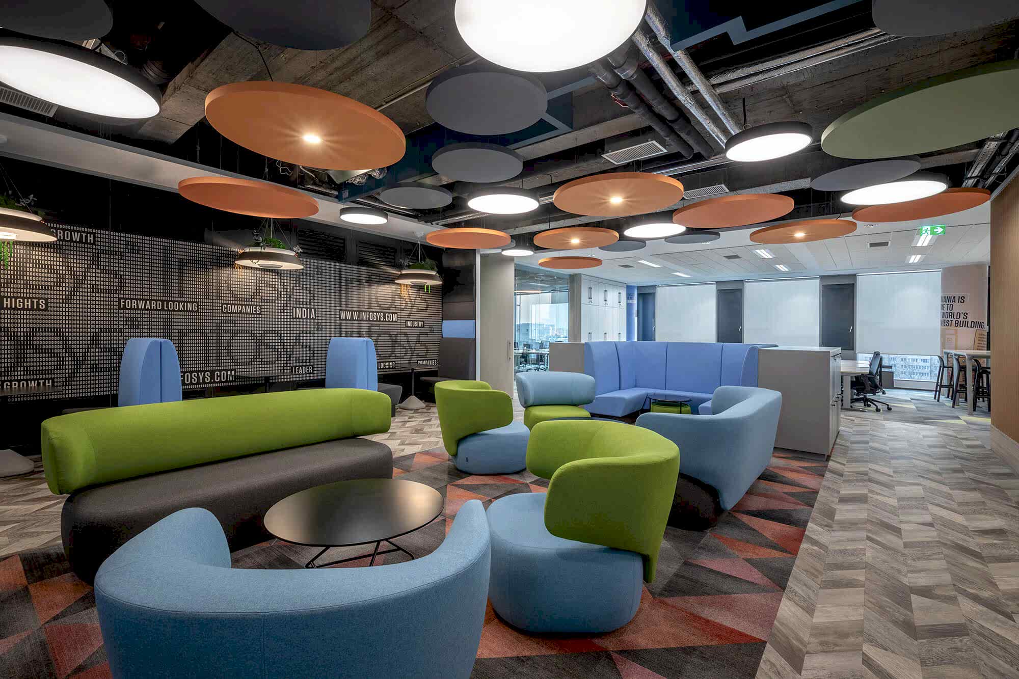 Tavan baffle ile ortamın dekorasyonu sağlanırken akustiği düzenlenir.