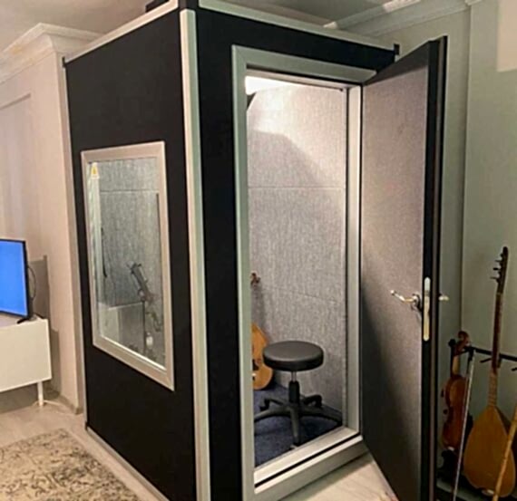 Evlerde, ofislerde ve ya stüdyolarda kolaylıkla kullanılabilmesi için stüdyo kabinlerini geliştirdik. Enstürman için, ses kayıt için ve ya çalışmalar yapmak için bu kabinlerden birini tercih edebilirsiniz. İçerisine yerleştirdiğimiz ses yalıtım süngerleri ile sesin dışarıya çıkmasını engelliyoruz.