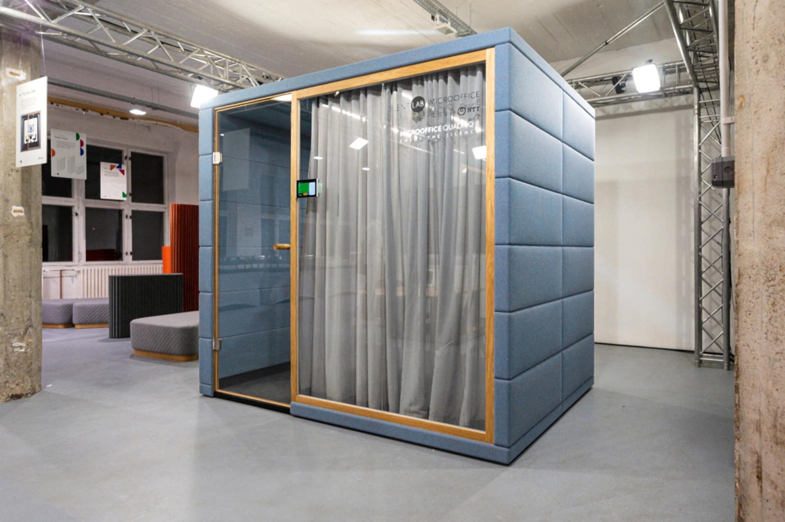 Kumaş kaplı çalışma kabinidir. İçerisindeki ve dışarısındaki malzemeler nedeniyle yüksek performans akustik düzenleme sağlar. Toplantılar için gizlilik sağlar. Ofislerin vazgeçilmez şık bir bütünlüğüdür. Bir çok renkte yapılabilir. Üretimden uygulamasına kadar istanbul akustik olarak buradaıyz.